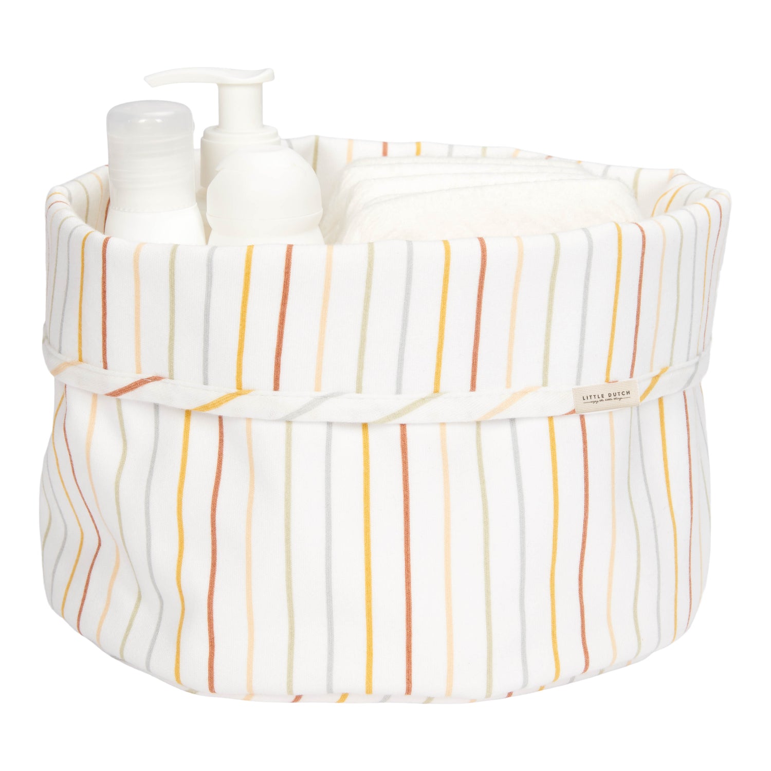 Keine herumliegenden Windeln, Tuben und Flaschen mehr: Mit diesem runden Pflegekörbchen von Little Dutch bleibt die Kommode ordentlich und aufgeräumt! Das Pflegekörbchen ist schön verarbeitet und bietet Platz für alle Produkte, die Sie für die tägliche Pflege Ihres Babys benötigen. Ein schönes Accessoire für das Kinderzimmer. Dieses Exemplar aus der Kollektion Vintage Sunny Stripes ist mit schönen Streifen verziert. Das Pflegekörbchen ist auch in anderen Formen erhältlich.
